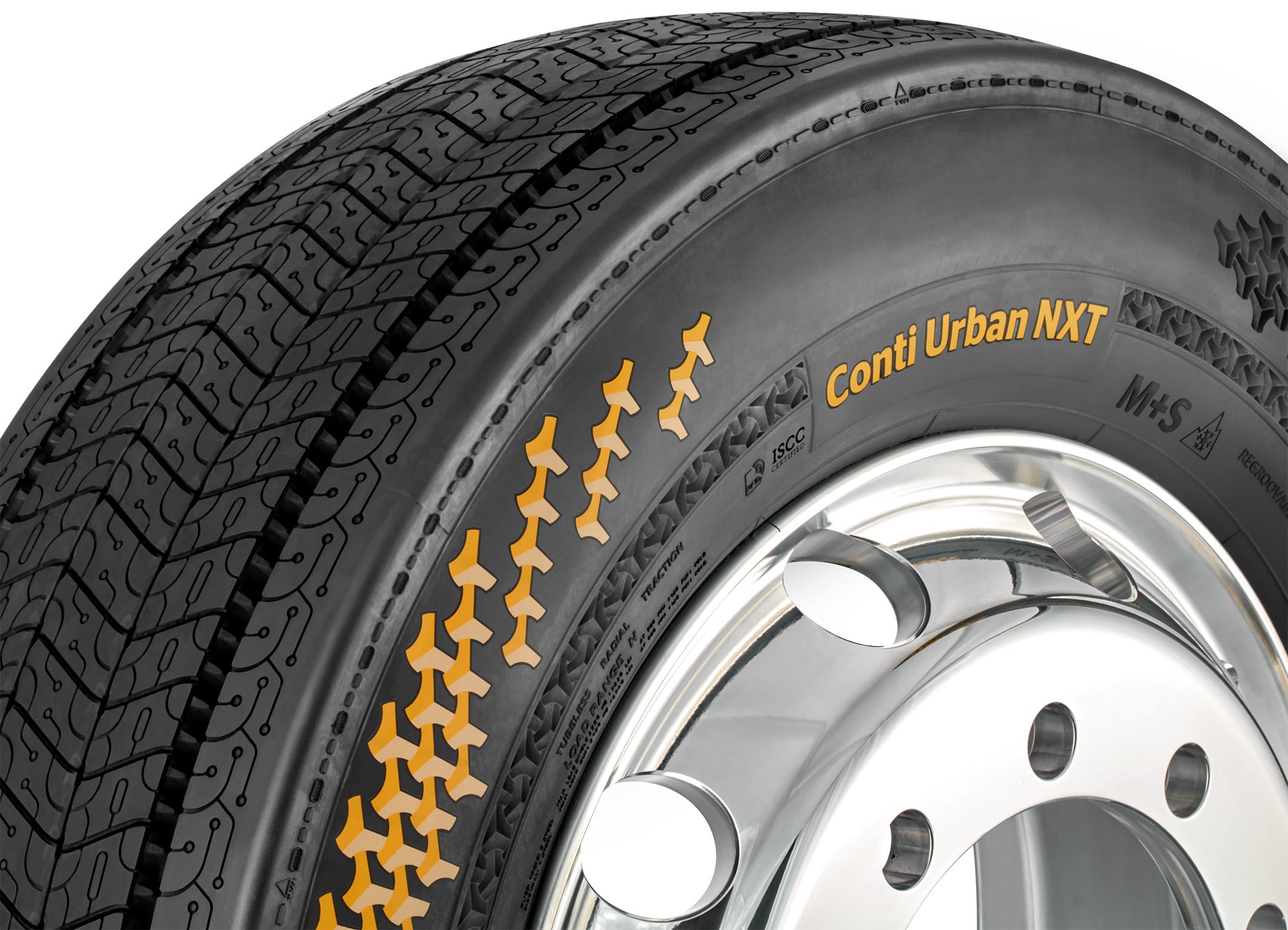 Continental también mostrará su neumático más sostenible para el tráfico urbano hasta la fecha: el Conti Urban NXT, que recientemente entró en producción piloto. Está compuesto por una proporción extremadamente alta de materiales renovables, reciclados y con certificación de balance de masa ISCC PLUS, llegando al 59 por ciento. Su baja resistencia a la rodadura también lo convierte en un elemento revolucionario para los vehículos comerciales electrificados.